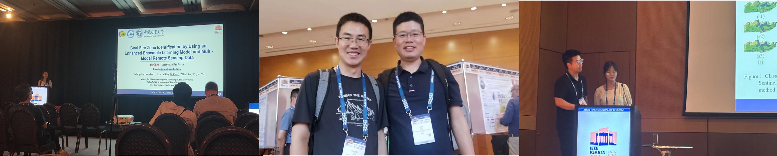 余科根教授担任专题“Advances in GNSS and SoOp Reflectometry: Instruments and Techniques”和专题“Classification and Clustering I”的分会主席,并作题为“GNSS+IR Imaging for Underground Coal mining induce ground subsidence Deformation”和题为“Spaceborne GNSS-R Sea Surface Rainfall Intensity Retrieval Considering the Effects of Wind and Wave”两场报告;郎丰铠副教授作题为“A Novel Ship Detector Based on Attention Mechanism and Upsampling Operator”海报展示;陈宇副教授作题为“Coal Fire Zone Identification by Using an Enhanced Ensemble Learning Model and Multi-model Remote Sensing Data”报告;赵金奇副教授作题为“A Novel Flood Monitoring Method Using Temporal Information and Statistical Characteristics in SAR Images”海报展示。海外联培博士生王昌阳、硕士生王子璇、本科生吴晴作报告及海报展示。