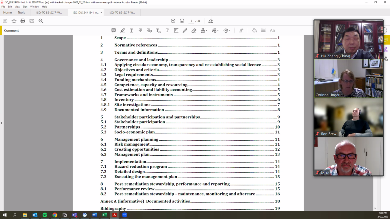 2023年2月2日,国际标准化组织采矿标准化技术委员会矿山关闭与复垦管理分委会第3工作组(ISO/TC82/SC7/WG3)以线上形式组织召开标准专家研讨会,来自中国、法国、加拿大、澳大利亚、德国、韩国等国的14名注册专家参加了会议。会议由牵头起草的澳大利亚专家Corinne Unger主持。我校明升体育