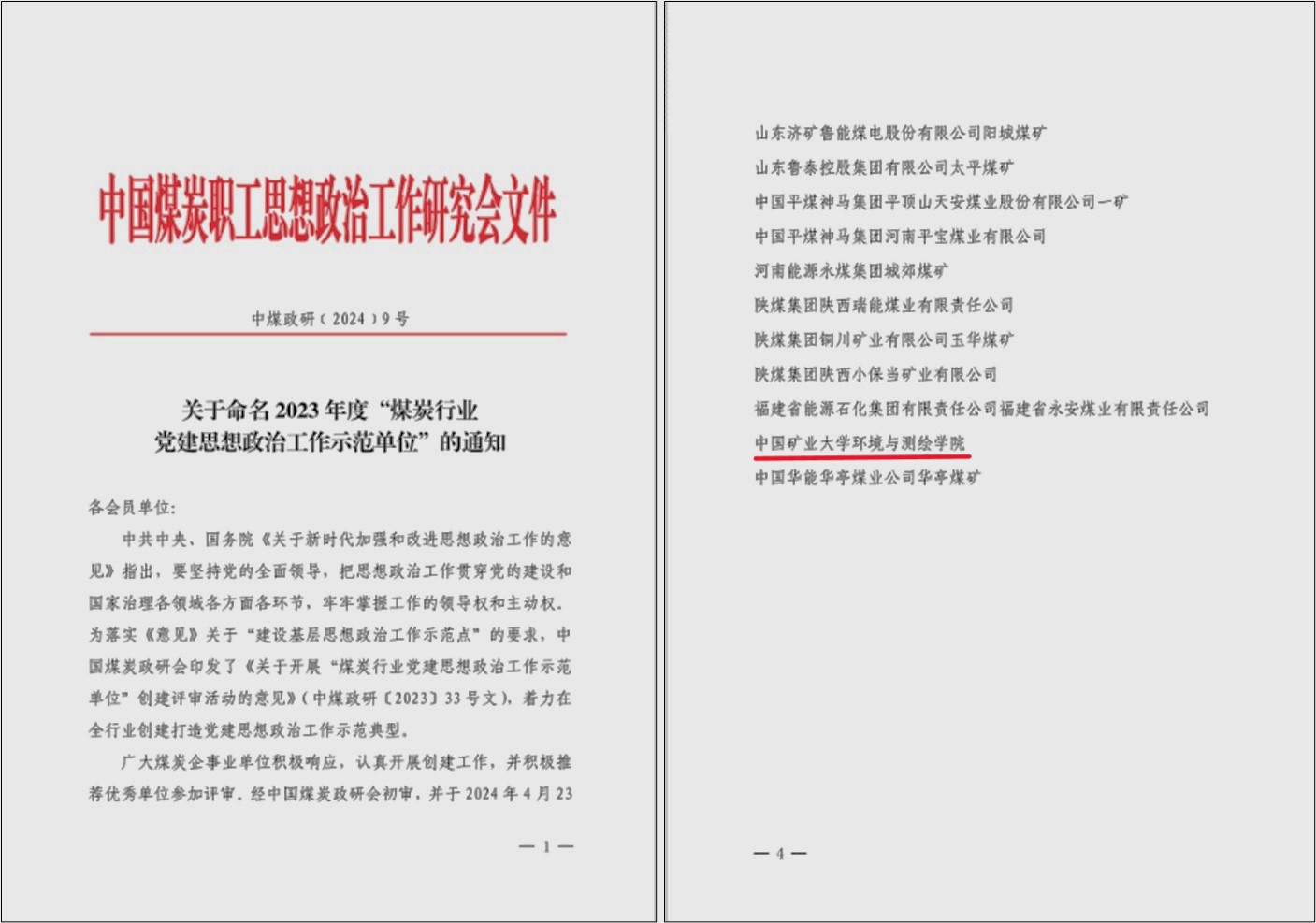 被授予2023年度“煤炭行业思想政治工作示范单位”称号。