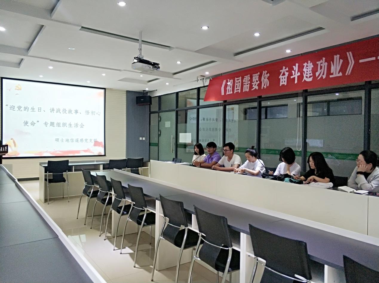 在建党99周年之际,为贯彻落实党中央关于常态化疫情防控的决策部署,充分发挥基层组织战斗堡垒作用和师生党员先锋模范作用,硕士地信遥感联合党支部于2020年7月7日于环A512以党员大会的形式召开“迎党的生日,将战役故事,悟初心使命”专题组织生活会。
