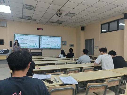 此次活动由团支书钱子璇主持。她从四个方面开展此次的团日活动。第一部分是活动背景,引导和激励青年积极参与环保活动、培养环保意识和责任感对于推动社会的绿色发展至关重要。在这种背景中,该活动应运而生,旨在通过各种形式的宣传和行动,号召广大青年积极参与到环保事业中来,以青春行动共同建设美丽中国,实现经济、社会和环境的可持续发展。第二部分是美丽中国行,向同学们介绍了环境保护,资源可持续性,全球合作的意义是坚持绿色发展,第三部分向同学们介绍了成功案例,期间还通过几个视频充分调动同学的热情。介绍了很多优秀案例。铺开详细地讲述了身为环境专业的我们应该做什么,怎么做的问题。最后,主持人对本次活动做了总结,呼吁大家继续学习、积极参加相关活动、上进进取、开拓创新。