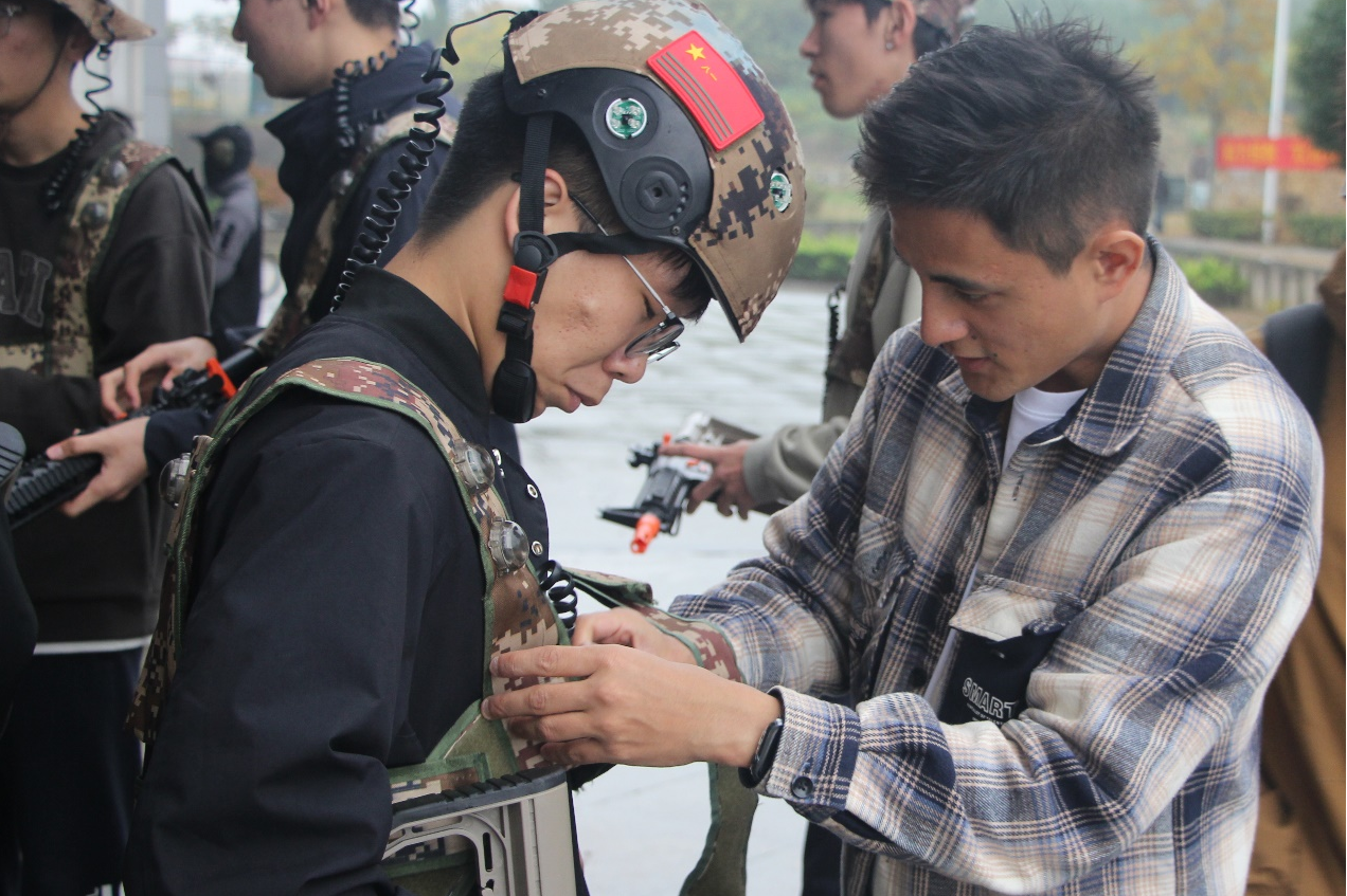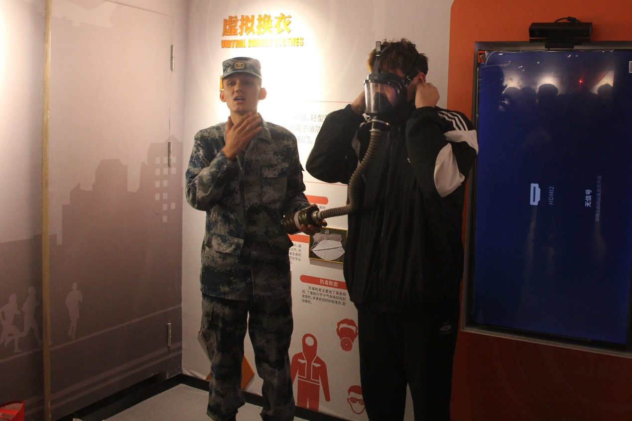 活动伊始,艾科拜尔详细介绍本次军事拓展活动的主要内容。随后,在人防体验馆中,我校国防教育协会退伍学生阿尔法传授防空警报的辨认、火灾形式及灭火方法、民防工程的主要地点等相关知识,并亲自示范如何正确佩戴防毒面具。最后,同学们体验了真人CS模拟射击,身着迷彩,穿梭在堡垒与掩体间,在紧张刺激的氛围中,感受了作战时的战术与勇气。