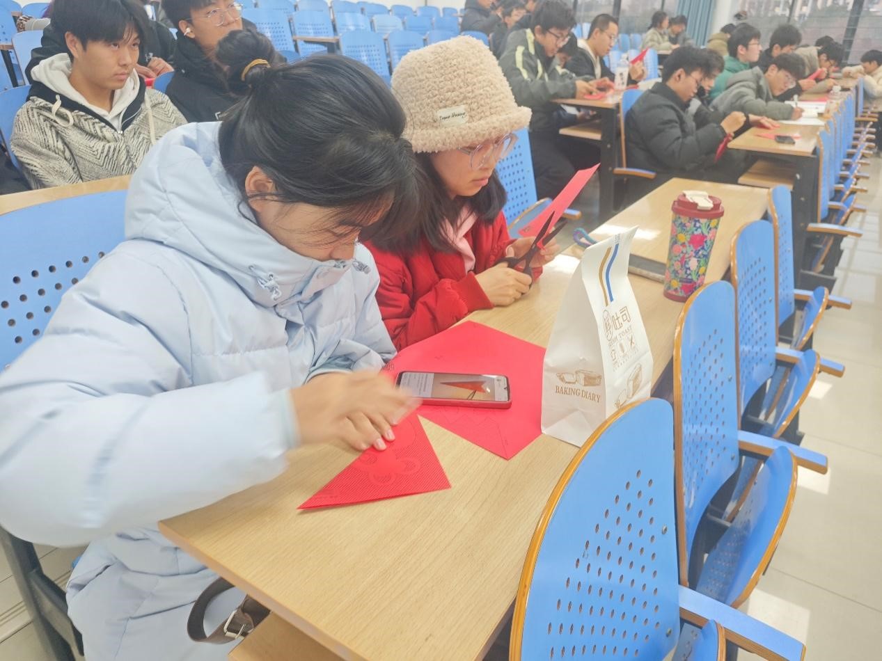 活动末尾的剪彩纳福环节,同学们在剪纸活动中亲身体验传统文化的精妙,沉浸式感受其魅力,将传承意识深植心间。