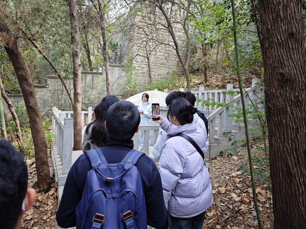 活动中,支部成员分为四个党小组,按计划对云龙山沿线红色景观进行分组讲解。王梓棋、杨佳静、范俊哲等26名党员同志分组担任了不同红色景观的讲解工作,深情讲述革命先烈的英勇事迹。在徐属各县抗战烈士纪念塔前,同志们缅怀抗战中牺牲的英烈,学习他们保家卫国的赤子之心;在津浦铁路抗战殉难员工纪念碑旁,大家回顾铁路工人为支援前线作出的巨大牺牲;行至佘锜义烈士墓和朱大同烈士墓时,党员们肃立默哀,致敬两位烈士为民族解放事业献身的崇高精神。在怀古亭(毛泽东主席登临处),同志们回顾毛主席“绿化荒山,变童山为富山”的重要指示,在湖光山色中远望,体悟伟人号召。活动的最后,全体成员登上了观景台并进行了合影留念。