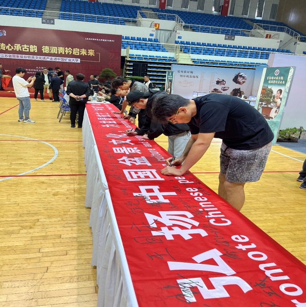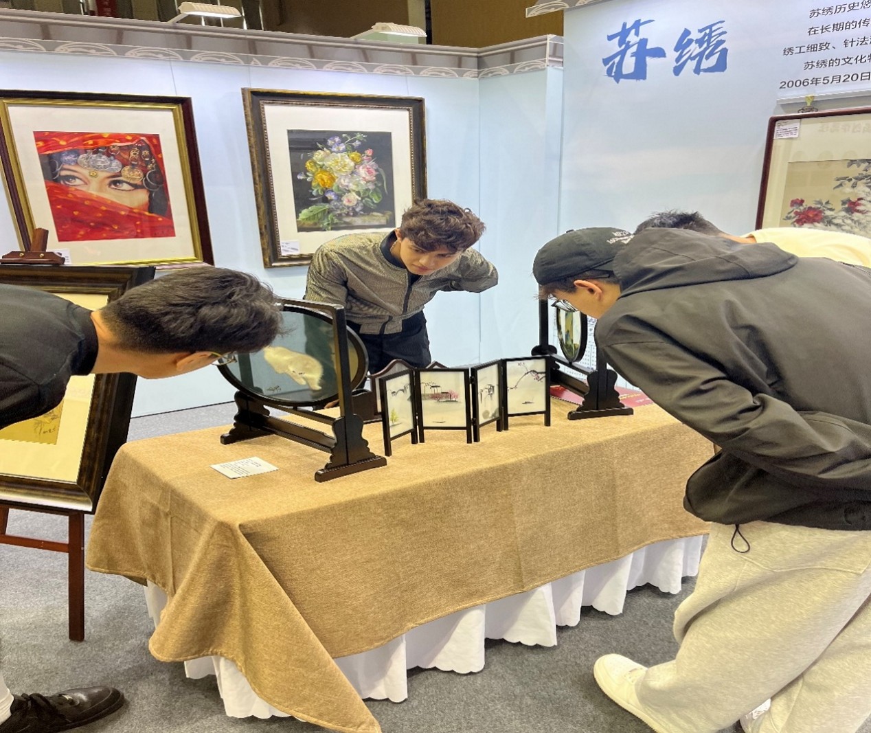 活动现场,宜兴紫砂陶制作技艺、苏绣、南京金箔锻制技艺、扬州盆景技艺、徐州香包等十项非遗项目集中亮相,技艺展演与手作体验相结合,生动展示了中华传统工艺的匠心独运与文化底蕴。红石榴文艺社团成员与非遗传承人深入交流,亲身体验跑竹马等传统活动,感受传统技艺的精湛与传承者的坚守。社团成员夏皮开提表示:各地非遗技艺如璀璨星辰,共同照亮中华文明的天空。今后,我会深入学习专业知识,挖掘文化背后的团结故事;主动参与民族文化交流活动,以非遗为媒,凝聚团结力量,做铸牢中华民族共同体意识的践行者。通过观摩不同地域非遗项目的交融共生,学生们深刻领悟到各民族优秀传统文化是中华文化不可分割的组成部分,在实践中增强了对中华文化的认同感和自豪感。