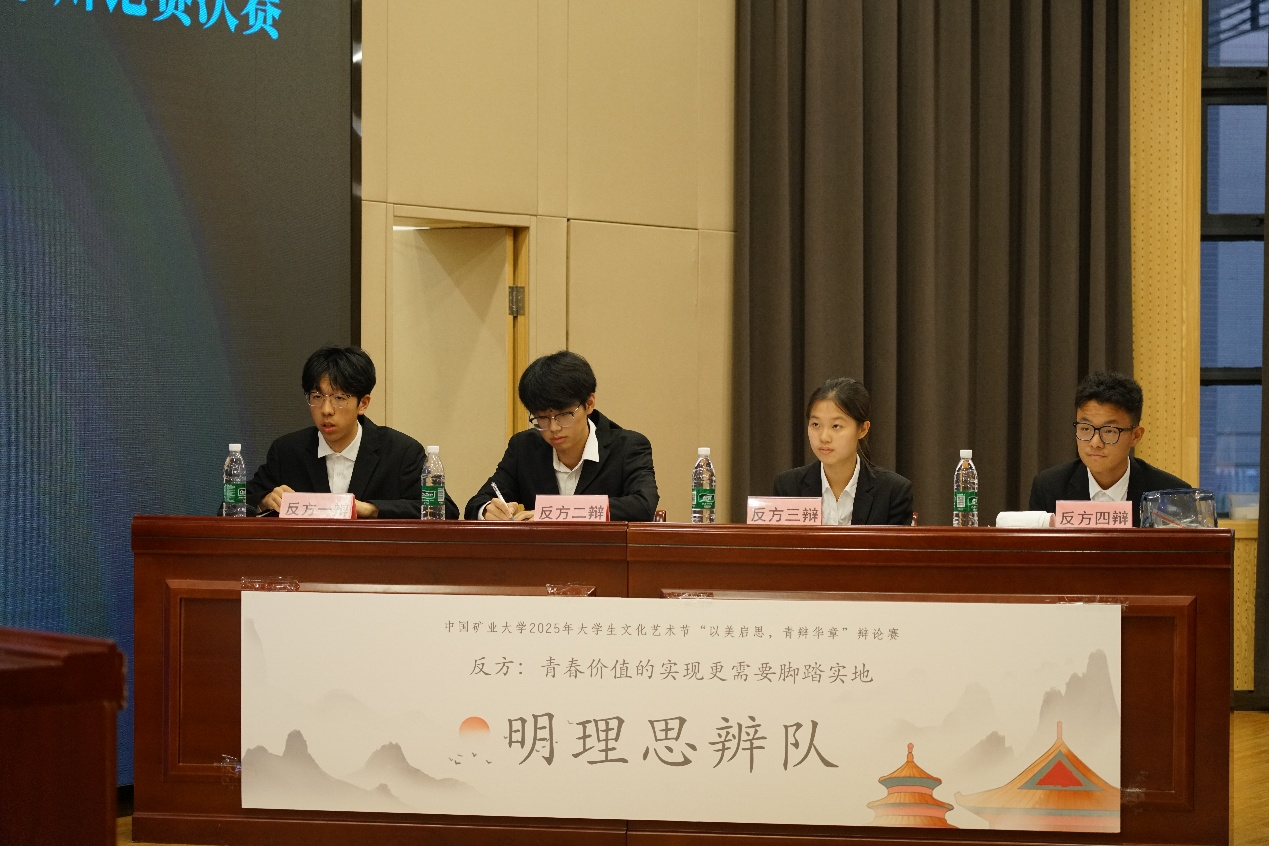 比赛中,“明理思辨队”与 “非攻明辨队”围绕“青春价值的实现更需要仰望星空(正方)/青春价值的实现更需要脚踏实地(反方)”这一辩题展开激烈交锋。双方辩手旁征博引、妙语连珠,在立论、驳论、攻辩、自由辩论等环节中各展风采,凭借严密的逻辑推理和出色的语言表达,为现场观众带来了一场思维与口才的盛宴。