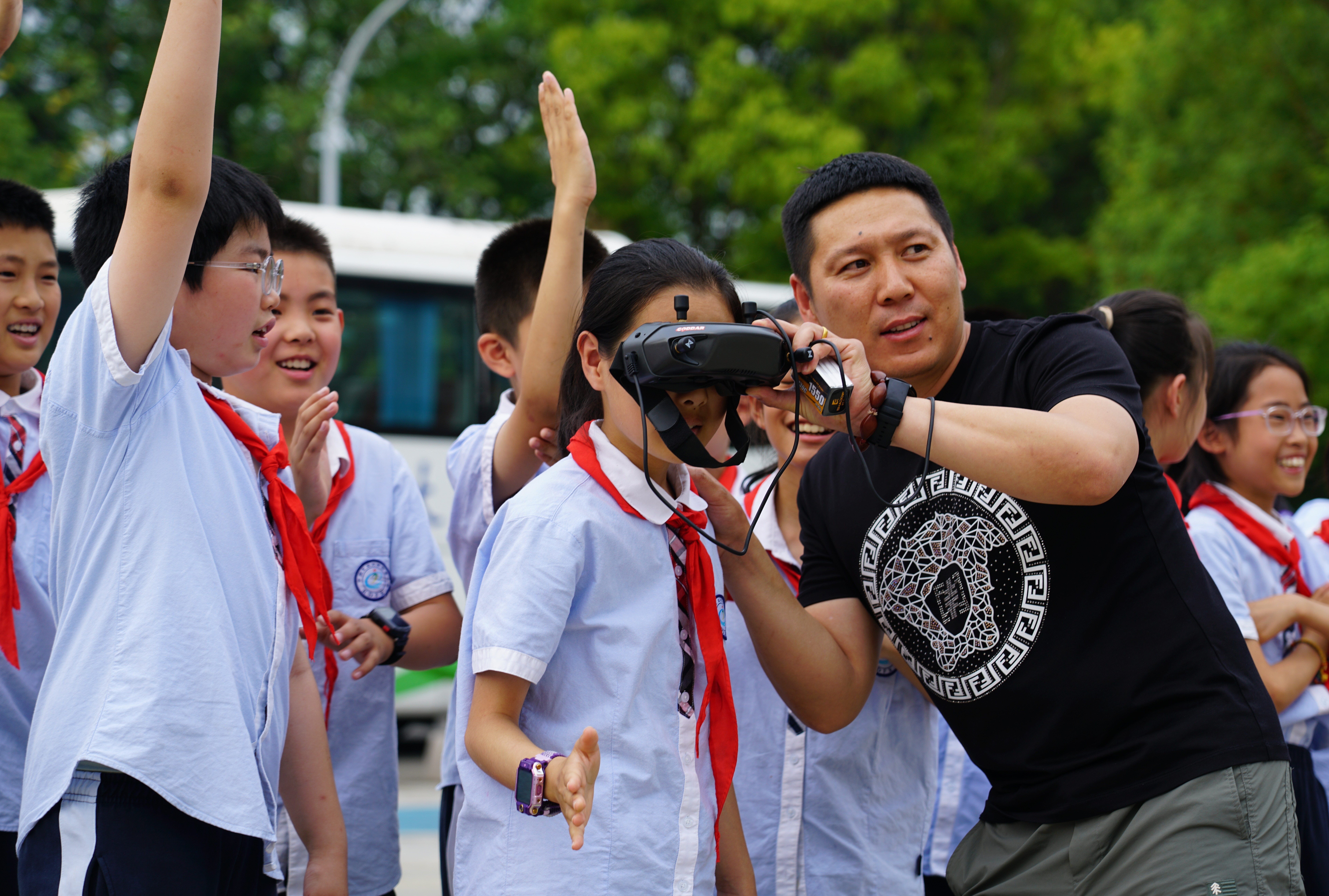 随后,学生们前往博物馆广场参与无人机互动飞行演示活动。专业教师作无人机设备与飞行常识科普介绍,展示了大疆经纬M30、民航局考试飞机和大疆御2飞机,并指导学生拍摄航拍视频。“无人机飞行口令挑战”将现场气氛推向高潮,学生们化身为“人体无人机”,根据“上升”“左转”等指令做出相应动作,在欢声笑语中体验科技的魅力。