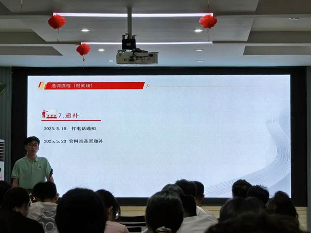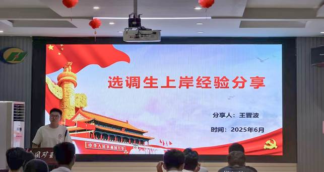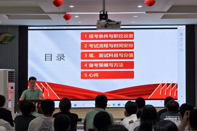 2025届毕业生张歆雨等成功上岸江苏省、安徽省、甘肃省、山西省基层选调生的5名同学应邀作经验分享,未来有志于报考基层选调生及公务员的近40余位研究生同学参加,院研究生党员工作站李苗苗主持会议。