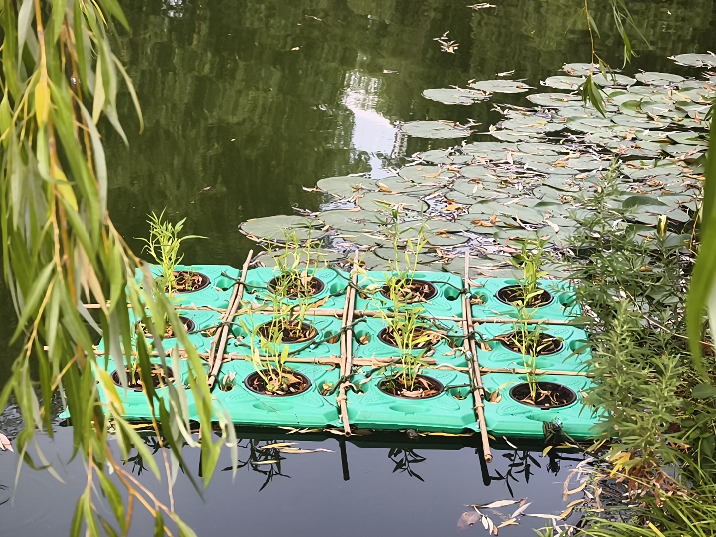 对面的河流中。目前河流内四组生态浮岛结构稳定,植物展现蓬勃生机,“长势良好”的不仅是植物本身,更是同学们心中守护绿水青山的信念与能力。