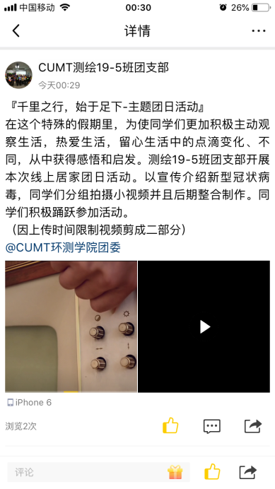 在这个特殊的假期里,为使同学们更加积极观察生活,热爱生活,留心生活中的点滴变化、不同,从中获得感悟与启发。测绘19-5班团支部在共青团环境与测绘委员会的号召下,在班级内部开展“千里之行,始于足下”主题团日活动。