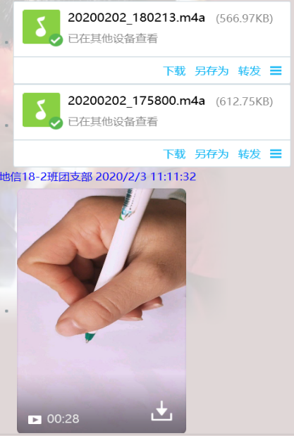 此次团日活动形式为线上。2月1日团支书和班长在班群上传相关文件号召大家积极加入其中。因最近新型冠状病毒的情况是大家关注的重点,所以我们的活动主题为“为武汉加油”,不到一天的时间就收到了同学们各种形式的成果,其中有最真挚的祝福语“相信我们伟大的医护团队和伟大的祖国,让我们用坚强、团结、积极、向上的行动来表达我们对疫情地区同胞的关怀对前线医护团队的敬意,用最真诚的祝福对所有在疫区中的同胞们说一句:武汉加油,中国加油!”、有录制的手写祝福,也有剪辑的视频和录制的音频等。内容多样,祝福真切,无不显示出同学们对国情的密切关注和对祖国寄予的美好祝愿以及积极参与其中的热情。