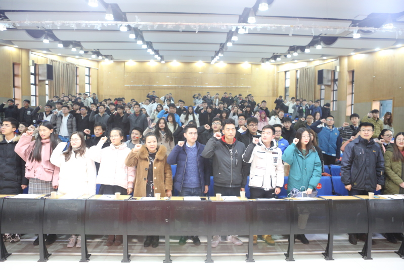 学生会主席寇玉珂同学上台带领大家进行宣誓,誓词中提到:“我将树立正确的人生理想和远大的成才目标,爱国明理,遵纪守法;态度端正,志存高远。成为有理想、有作为、与时俱进、适应现代社会发展的综合性人才。”而其中所蕴含的就是当代青年人、当代大学生所应该具有的品质,宣誓内容切切实实地贴合了本次大赛的爱国主题,同学们慷慨激昂,也将本次决赛的气氛推向高潮。随后,正赛阶段正式开始,展示顺序按照17、18、19级顺序进行,本次决赛的赛制形式包括班级风采展示和爱国纪念展示两部分,风采展示部分,由本班班长对本班的班级风貌和学风建设进行ppt讲解或者视频展示,以此来凸显本班的学风特色和学习风格。在17级同学们展示全部完成之后,由韩福顺老师率先进行点评,他对17级同学们的展示表示赞许,并表示看到了同学们的用心,希望接下来18、19级的同学们能够表现得更加出色。陆雨老师对随后18级的展示作出点评,他指出了同学们在展示过程中包括时长、台词等几个方面的问题并给出了自己的建议,希望同学们在以后的活动中能够表现得更加优秀。本次大赛的重点展示即为爱国纪念展示,而明升体育