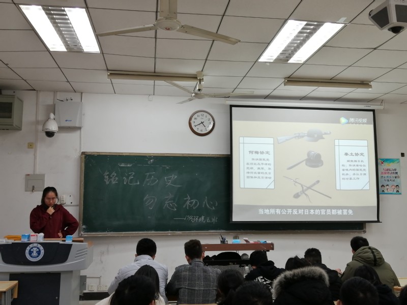 环境类19-5班在博学4号楼B103开展了以“纪念一二·九运动”为主题的团日活动,活动旨在让同学们了解一二·九活动的相关历史,弘扬大学生的爱国精神,呼吁同学们“铭记历史,勿忘初心”,同时提高班集体的凝聚力。