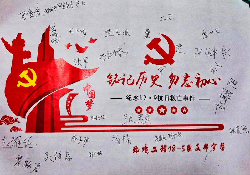 环境18-5班团支部组织于博4-B206举办了“铭记历史,勿忘初心”主题团日活动,旨在让同学们了解一二·九运动的相关历史知识,弘扬爱国精神,通过纪念一二·九运动,呼吁同学们铭记历史,勿忘初心。