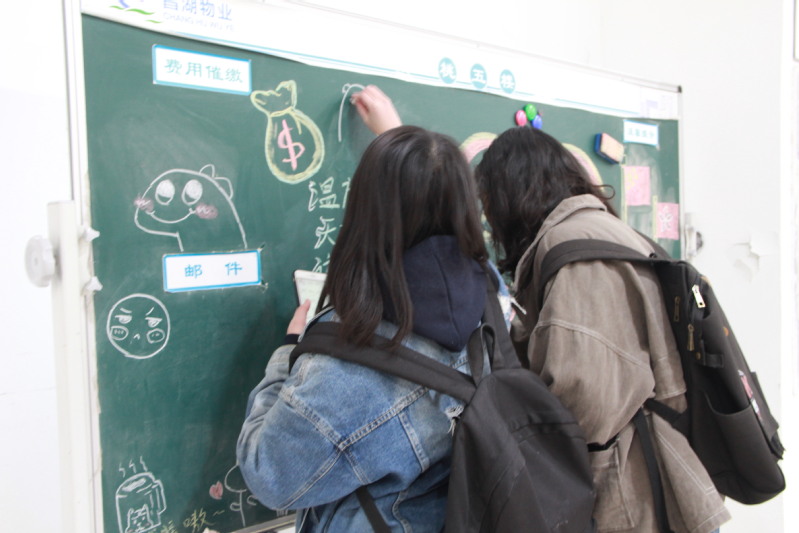 下午4点,全体志愿者在桃五AB区门口集合。随后,按照事先分配的三个小组分区域开始活动。负责室内的同学在物业阿姨的指导下,进行打扫地面、清理死角、整理桌椅、清洁玻璃等工作;室外的气温虽低,但志愿者们热情高涨,依旧认真负责,确保所承担区域内环境清洁,并把停放的单车、电动车排列整齐。板报组的同学们开拓思维,用心创作出有温度的字画。为同学们进出宿舍提供了良好的环境,同时也减轻了物业阿姨和保洁人员的负担。本次活动持续两小时,土地18-1班的同学们相互帮助,共同努力,圆满地完成了本次活动。