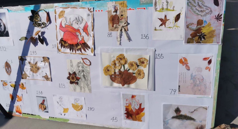 参与本次活动的同学们利用校园的落叶,借助自己的想象和动手能力制作成各式各样的工艺品,此外今年的活动还将摄影和剪辑视频两种新颖的方式融入其中。此次获奖的作品制作成展板在桃苑和松苑餐厅广场进行展览投票,展板上的15幅作品,每一件都包含着设计者的心血,精致雅观。路过的同学纷纷驻足观看,每人拥有3次投票机会,路过的同学都积极为自己喜欢的作品投票。宣设部的工作人员也会定期为作品喷水,以保持树叶的新鲜和作品的完整度。