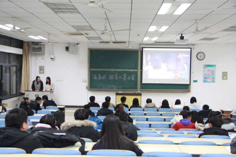 比赛前夕,各参赛队员纷纷摩拳擦掌,跃跃欲试,仿若已稳操胜券。晚7点,在所有参赛选手完成签到之后,本次决赛拉开了序幕。第一环节为视频配音,参赛队伍在赛前自行准备选手擅长的视频进行配音,有的是生动有趣的动漫剪辑,有的则是经典的影视作品,内容丰富多彩。参赛选手的表现也十分精彩,他们表演的惟妙惟肖,使观众声临其境,并且现场爆笑不断,活泼热烈的气氛感染着在场的每一个人。