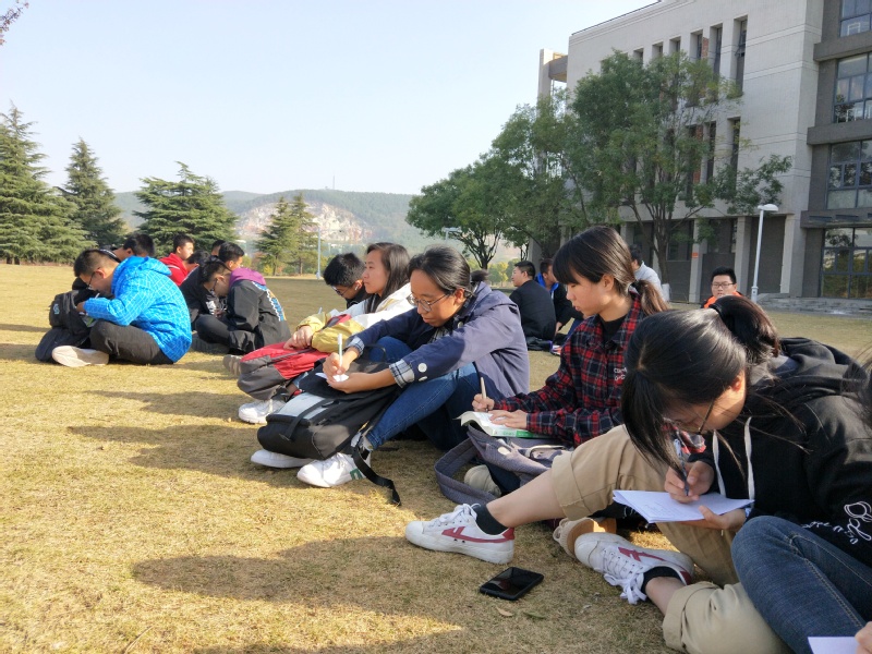 测绘类19-2班在草坪上进行集体游戏
