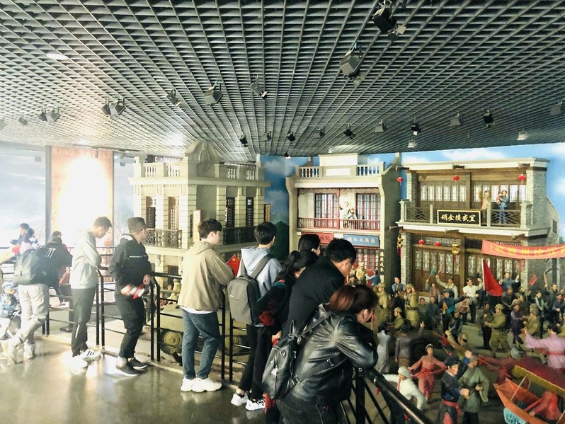 随后,步入淮海战役纪念馆内,室内展厅包括序厅、战前形势、战役实施、战役胜利、人民支前、缅怀先烈、全景画馆七大部分,以及“十人桥”、“徐州解放”等15个逼真的场景再现布置。展厅陈列的老照片、蜡像和浮雕生动再现了战役的三大阶段——围歼黄伯韬兵团、围歼黄维兵团、以及全歼杜聿明集团的恢弘气势。同学们认真观看展厅内的珍贵图片、文物等资料,深深为淮海战役的光荣历史和英雄事迹所震撼,也为这些革命烈士的无私无畏的崇高精神而感动。