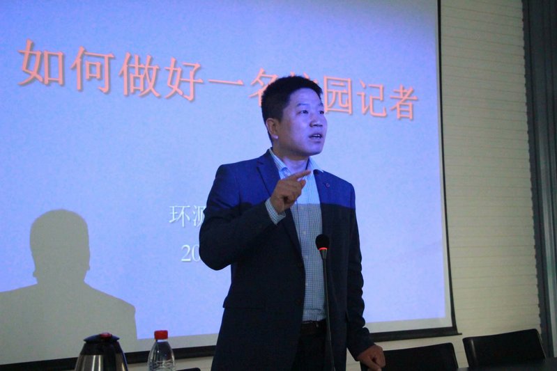 培训会伊始,王书记结合自己的相关经验,以“如何做好一名校园记者”为主题作了分享报告。在简要介绍了新闻的基本要素、时效性及其种类划分等后,他就校园记者应具备的素质作了具体阐述,希望各部门成员能时刻谨记自己身上肩负的社会使命。最后,他强调记者本就是无冕之王,要时刻铭记自己应担当的责任——铁肩担道义,妙手著文章。