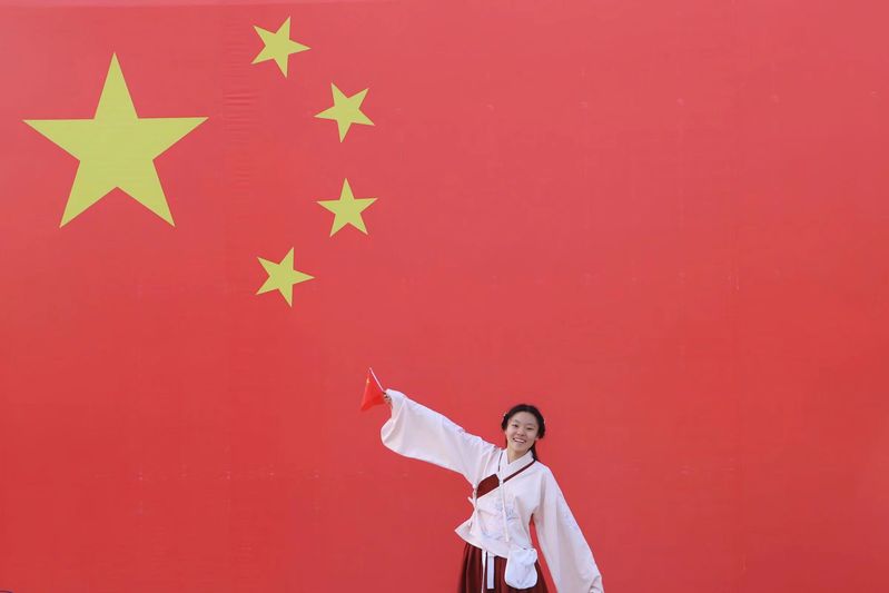 “我”与国旗合影