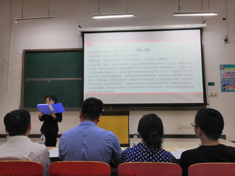 第20届团委学生会主席团成员。本次会议在以往选举的模式上做出了修改与调整,使选举制度更加完善、合理,同时保证了学生工作学生参与、学生建设的民主性和科学性。