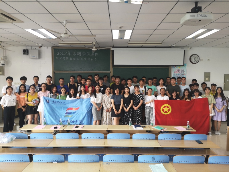 “青春心向党,建功新时代”2019暑期社会实践出征仪式暨培训会在博一A301举行。院党委副书记王守刚、学工办主任韩福顺、团委书记于海霞、各年级辅导员以及学院2018年优秀社会实践团队代表和2019年社会实践团队代表共计100余人参加了本次仪式。