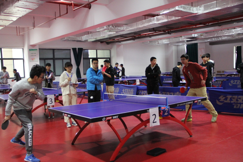本次比赛分为单打赛和团体赛,上午8点30分,参与单打赛的34名同学,包括男子25人、女子9人均已就位,伴随着裁判员的哨声,比赛正式开始。此次比赛采用单人淘汰制,众多势均力敌的参赛者也使得比赛更为精彩,各种弧线球、削球、搓球等击球技巧得到了众多观众的喝彩。在经过2小时的激战,男单八强和女单六强脱颖而出。