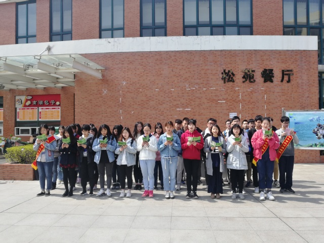 3月22日中午12:30,数十名大学生世纪环保组织成员齐聚松苑餐厅广场,举行庄严宣誓,并向来往同学宣传“世界水日”的相关知识。