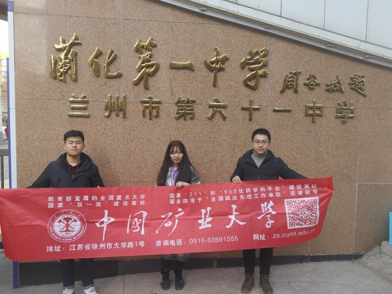 参加“母校行”活动的小组成员于明辉、王煜轩(土木工程)、葛殷泽、施洋洋于甘肃省兰州市第六十一中学进行矿大宣讲。