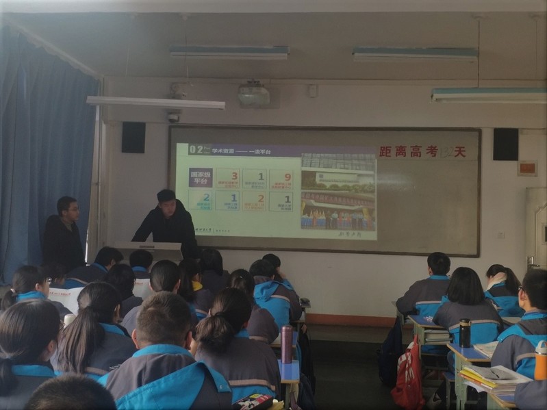 小组按照母校优秀学子返校宣讲计划与其他高校学子一道,为即将步入高考的高三学子进行宣讲。下午2点,全体见面会正式开始。首先,兰州市第六十一中学的王效勇老师上台强调了活动秩序,介绍了活动流程,将各个高校的宣讲员进行分组,采用分组进班的方式开展活动,在“母校行”见面会之后,各小组按序进班展示。小组成员借助PPT从学术资源、人才培养、奖助体系、文化校园、魅力徐州五个方面近距离为高三准毕业生展示了中国矿业大学概况,重点介绍了高三同学们比较感兴趣的大学学习环境、食宿、资源及丰富的校园活动等,同学们纷纷表示出了对中国矿业大学的向往。