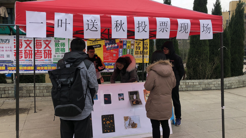 参与活动的同学们将校园内掉落地的树叶收集起来,借助一些工具做成各式各样的工艺品,入围的作品被制成展板在一二食堂广场进行展览投票,在展板上的20幅作品,每一件都包含着设计者的心血,精美绝伦。路过的同学们纷纷驻足观看,积极为自己喜欢的作品投票,仅一个小时,发出的300张选票就全部用完。而主办方也会定期为作品喷水,以保持树叶的新鲜。