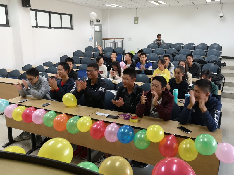 下午四点整,同学们开始行动起来,共同装扮教室,吹气球、写大字、想游戏,营造了一种活跃的氛围。布置好教室后,同学们纷纷落座,活动正式开始。首先由15班的团支书和心理委员对本次活动的目的和意义做了一个简短的介绍。紧接着,各位班委就目前班内存在的问题和对未来班级的建设与同学们进行了深入的讨论,各位班委积极听取了同学们对于自己负责事务的意见,大家认真地谈论了一些问题。随后,由学长为同学们就学习效率有关的问题进行讲解,并实际举例演示,相信各位同学都有很大的收获。讨论进行完毕后,同学们开始了抽纸条游戏,纸条上的内容是对某位同学的描述,然后大家进行猜测,这是一个增加大家感情的游戏,现场笑语不断,大家都积极地参与进去。活动的最后,同学们合影留念。
