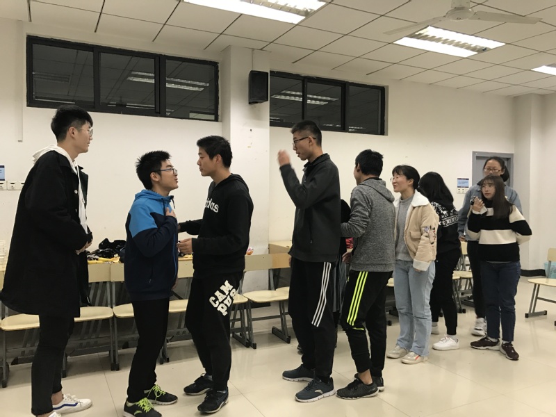 在简单介绍活动目的和内容后,班会在击鼓传花中开始,同学们在手中依次传递柠檬,而失误接受惩罚的同学则需到教室中间表演节目或盲选吃掉惩罚区中的食物,活动在同学们的热情中迅速升温。紧接着,又进行了你划我猜的团队接龙猜词游戏及“水的搬运工”游戏,在这些环节中,同学们充分意识到团队中个人的重要性以及合作的必要性。