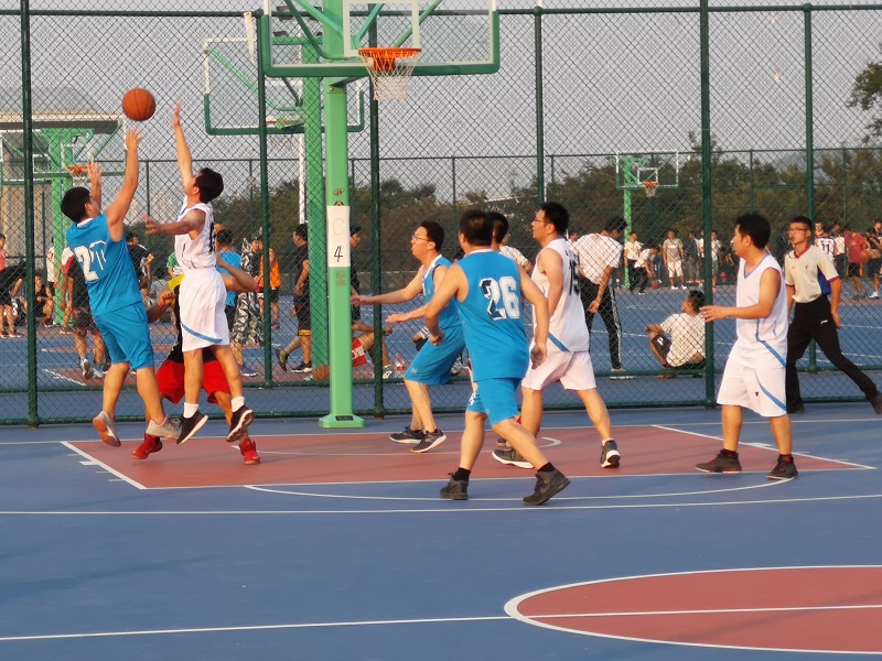 教职工篮球队员提前在比赛场地进行热身,进入比赛状态。比赛中,郝明、李怀展、陈国良、丁毅、闫志刚等老师团结合作,多次突破进球,一开始便领先对方六分。但是机电学院的教职工实力强盛,一步步反超,甚至领先,最大时相差十分。下半场,郝明老师以他精湛、娴熟的运球和上篮以及李怀展、陈国良等老师的团结协作最终将比分扳回到只差一分,比赛进入赛点。最后一回合对面后场球,环测全场紧逼,双方都展现出精彩的表现,你来我往,互不相让。就在明升体育
