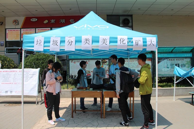 青协协办的“垃圾分类,美化矿大”活动于一食堂前进行宣传。