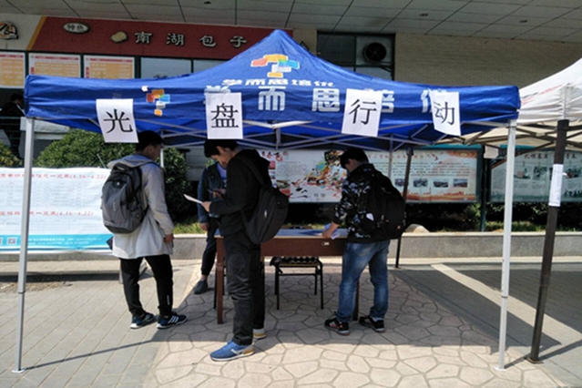 4月18日中午12时,为积极配合共青团中国矿业大学委员会主办的光盘行动,培养同学们勤俭节约的美德,增强其珍惜粮食的意识,明升体育