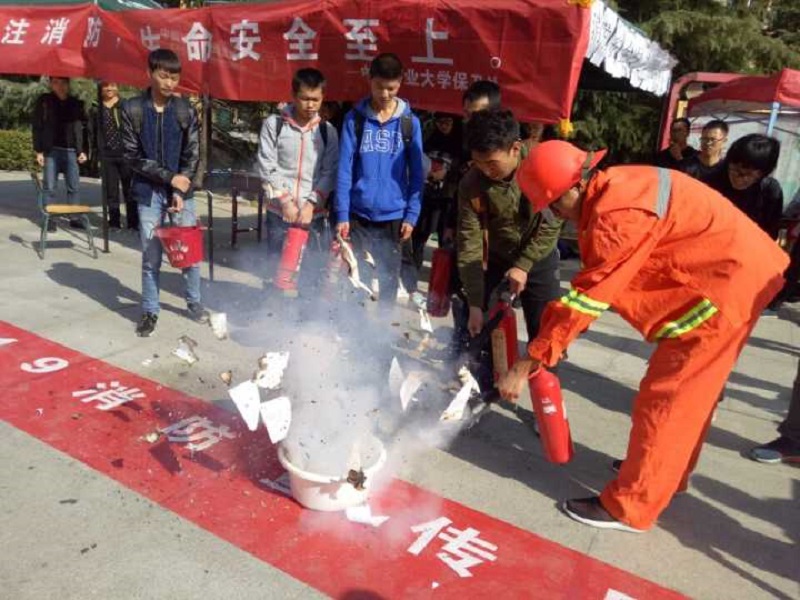11点50时,进行消防演练的同学逐渐到达场地集合,并准备好了消防灭具。12点整,同学们进行灭火演练。在灭火演练过程中,同学们通过扫描二维码参加,并在操作消防器材、灭火等活动中表现积极。志愿者们向在场同学讲解消防安全知识,以及遭遇险情时自我救助与互相救助的方法。同时,此次消防安全知识活动也吸引了大量同学驻足观看、学习消防知识。