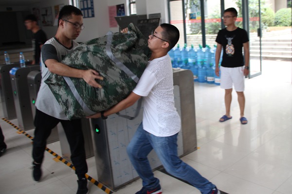 各学生组织迎新成员负责搬运。