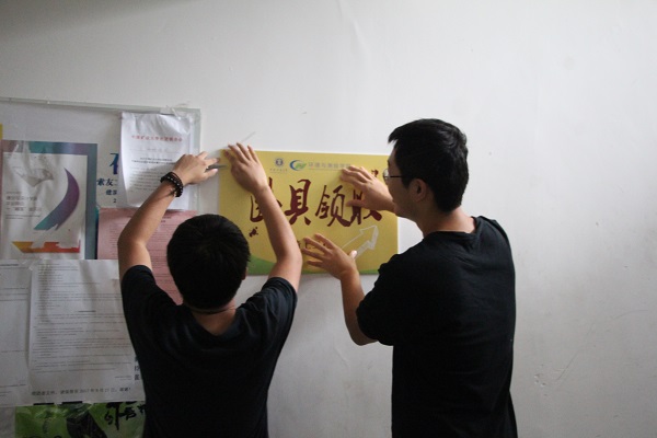 各学生组织迎新成员在桃苑五号楼大厅集合,为新生到来做准备。首先,同学们进行了任务分工。搬运帐篷、桌椅,张贴标语、横幅、指示牌,同学们积极地布置着新生报道区。之后,同学们根据报道的流程对场地进行了合理的划分并对报道所需设备进行了安装。尽管下着大雨,同学们对迎接新同学的热情丝毫不减。一早上的工作结束后,明升体育