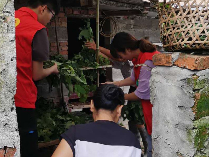 团队成员帮助夏士如一家捋羊叶