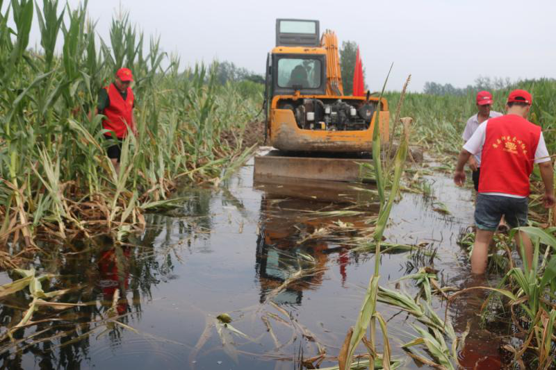 8月7日上午,朱凯与志愿协会人员抵达现场,见赵庄镇灾情严重,街道、田间、居民门口等都有很深的积水,朱凯没有退缩,毅然加入到抗洪抢险队伍中。由于赵庄镇排水系统不够完善,涝灾不能及时得到解决,严重影响居民生产生活。面对河水漫溢、道路交通阻断等困难,他们拉警戒线,疏通排水沟、清理淤泥、清理道路杂物,以最大的精力投入到救灾抢险行动中。同时,志愿协会还请来挖掘机协助进行田间泄洪,朱凯则与志愿者为挖掘机探查路面积水情况。经过一天努力,泄洪工作取得了一定进展,居民的正常生活得以恢复。