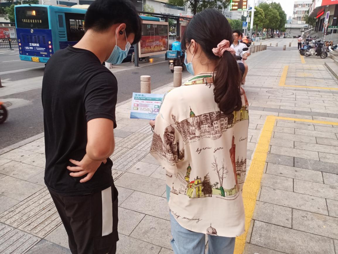 向路人介绍联通品牌宣传活动