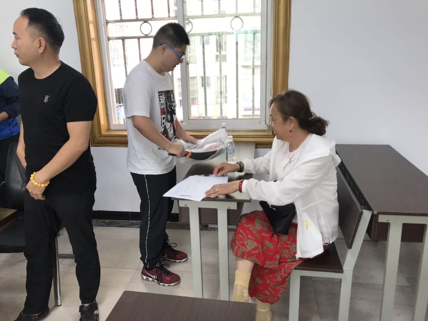 实践人员帮忙发放礼品
