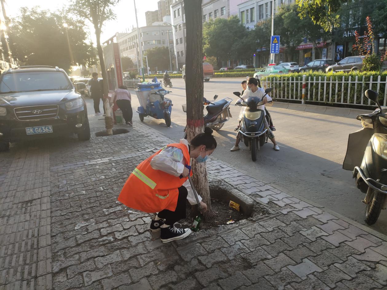 王薇在街道清理垃圾