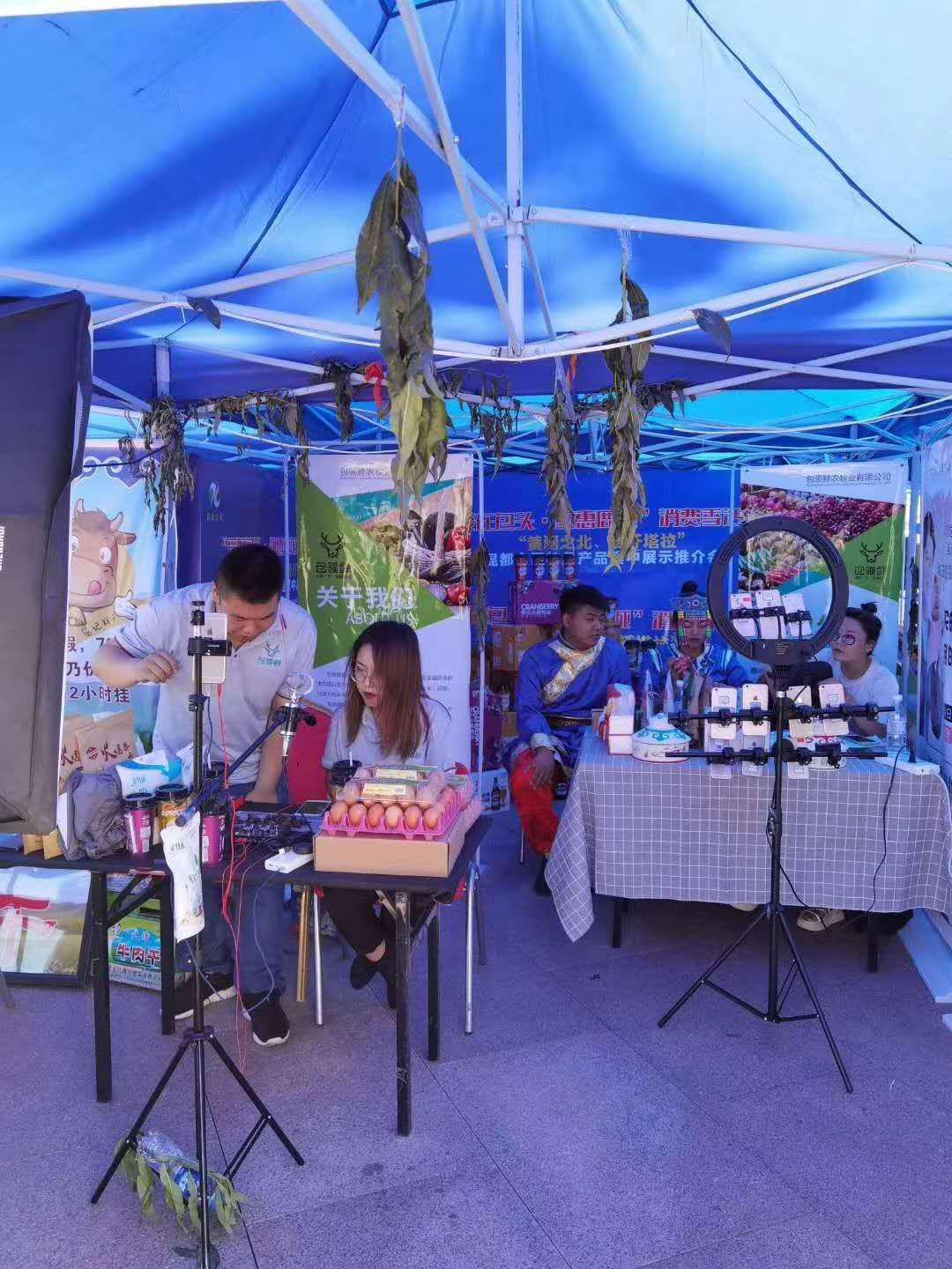 为保证本次活动的顺利展开,参与人员提前一个月便开始进行活动的准备与策划,通过与各个电商平台的合理沟通,以及引入不同的产品类型并与厂家争取合理的价格,在场地方面,通过与场地方不断地联系,最终充分的完成了前期准备工作,为此次活动开了个好头。活动当天,所有参与者便于早上7点在场地集合,进行分工合作,场地的搭建、设备的调试以及产品的摆放,每个工作都井井有条。于上午10点进入直播环节,本次活动中进行线上线下同时展开,线上所有卖出的商品均为现场包裹、邮递,保证了商品的真实性和可靠性,同时,线下也会对所卖商品进行实物展出、品尝。在此活动期间团队成员相处融洽,活动效果良好,为了解本区经济发展状况和增加社会经历做好了基础铺垫的工作。