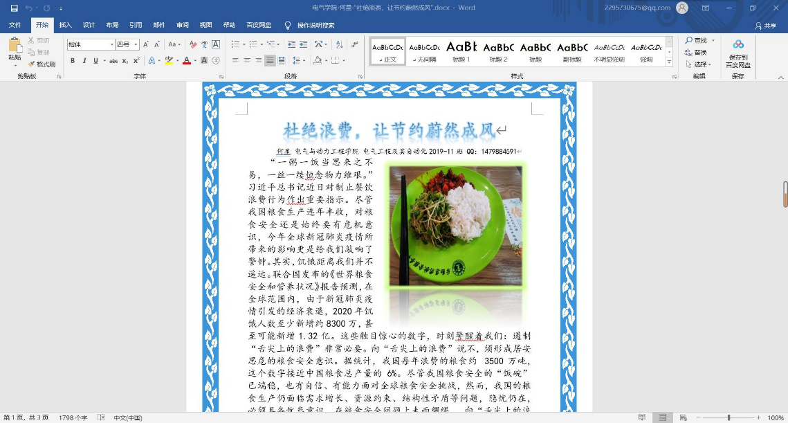 本次征文以线上形式开展,面向全校学生,旨在鼓励让同学们重新唤醒“厉行节约、反对浪费”的意识,充分体现当代大学生俭以养德的精神面貌。经过前期的准备宣传工作,越来越多的同学了解到本次征文活动,并积极主动地参与进来。截至9月27日晚,举办方收到多篇作品,作品都紧紧围绕“厉行节约、反对浪费”这一主题,以同学们对节约的理解,用文艺的形式生动展现节约对个人、社会以及对国家的影响。