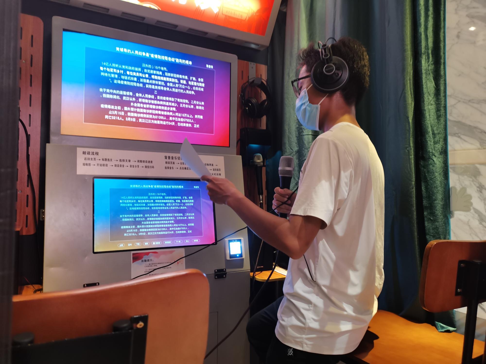 “矿油红人”小分队成员杨陆锐为视频做录音工作