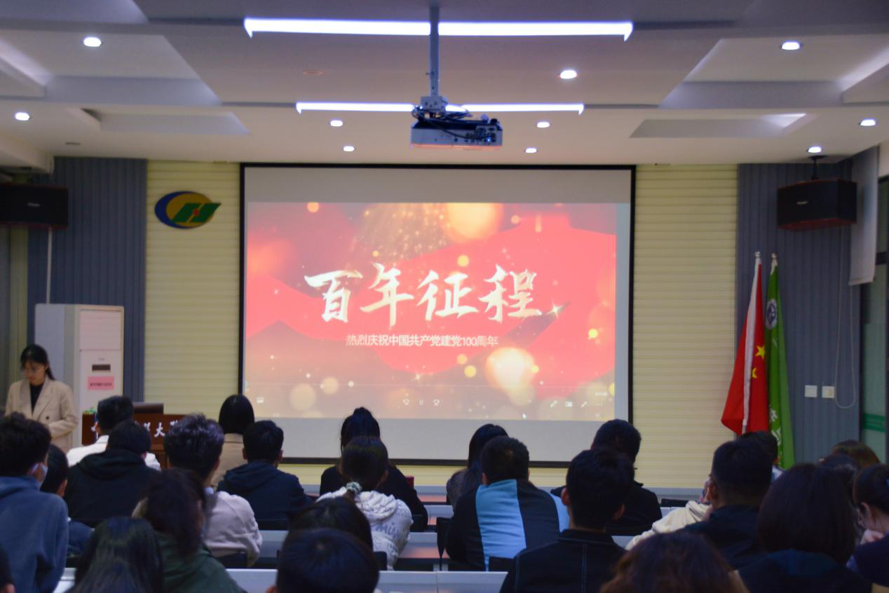 活动伊始,党站李锐同学通过PPT讲解带领大家回顾共产党波澜壮阔的百年征程和伟大成就,他通过讲述英雄人物的光辉事迹,让与会人员切实感受到革命先辈的无畏精神。此外,李锐同学还细致讲解了党的百年奋斗历程中形成的一系列伟大精神,这些精神共同组成了中国共产党人的精神谱系,是我们宝贵的精神财富。随后,全体参会人员共同观看了“不忘初心、牢记使命”献礼建党一百周年短片,大家聚精会神,跟随视频一起回顾感受了我们党风雨兼程的百年,短片内容丰富、震撼人心,同学们看完表示深受振奋。