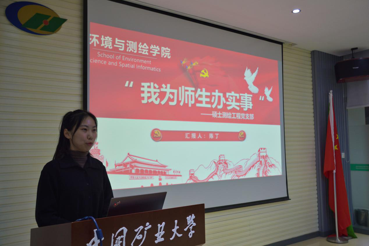 硕士环工党支部、硕士测绘党支部、博士党支部等八个党支部依次汇报了“我为师生办实事”志愿服务活动的开展情况。研究生党员同志们牢记职责使命,立足岗位实际,积极参加了包括抗疫志愿服务等多种志愿活动,为师生办实事、做好事、解难事,展现出了环测学子的风采,是值得同学们学习的榜样。
